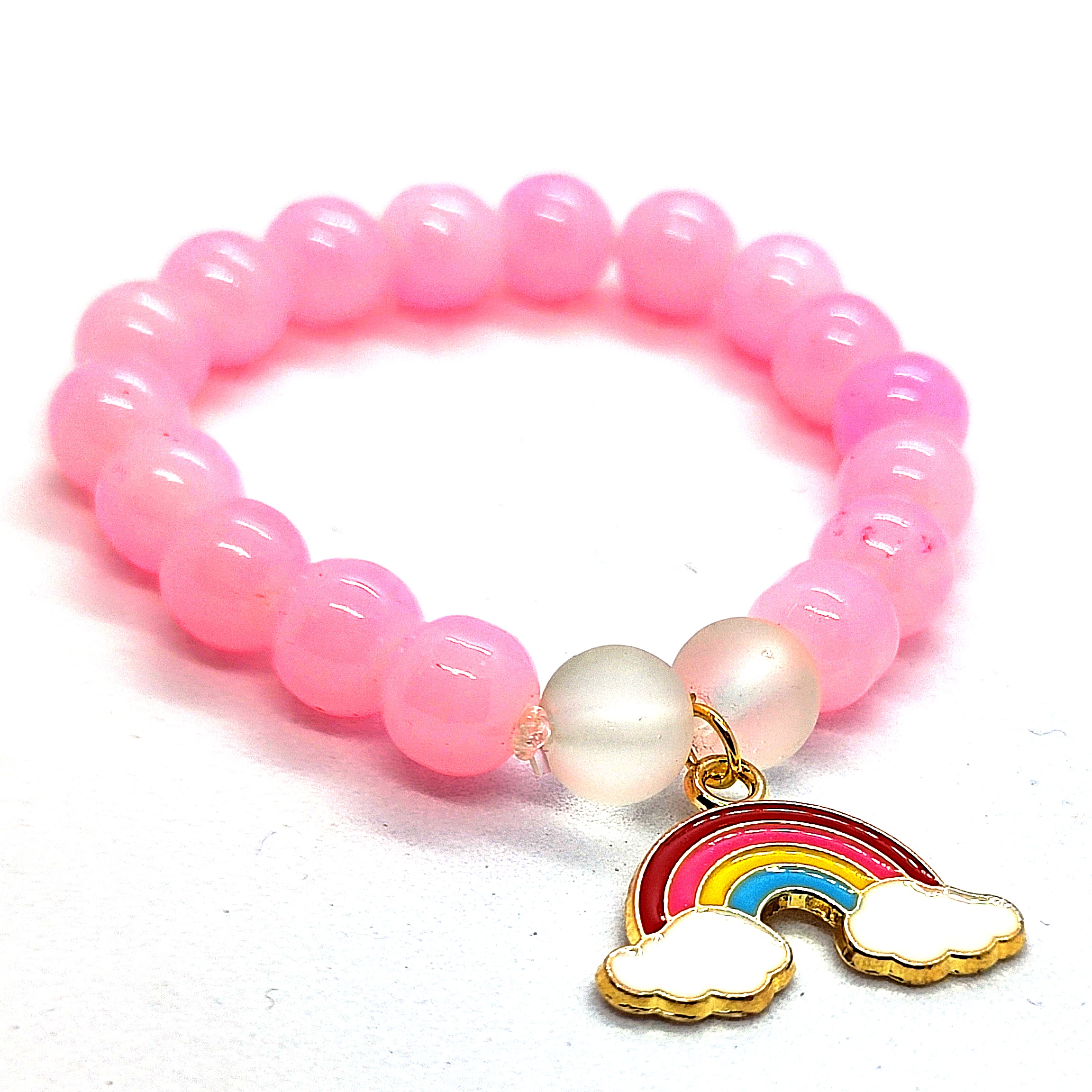 Kunzite crystal bracelet with rainbow charm